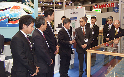 本展には、日本財団の支援のもとに日本船舶輸出組合、日本造船工業会、造船12社が参加し、当社も日本のナショナルスタンドの一員として参加致しました。今年は52カ国・地域から約1,100社の企業・団体等が出展し、そのうち日本、ノルウェー、韓国、オランダ、ルーマニア、アメリカなど 17ヶ国がナショナル・スタンドを形成、入場者は約28,000人でありました。