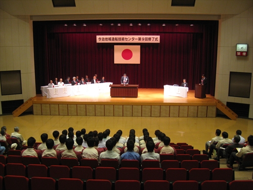 6月28日(金)、四国運輸局海事振興部長 戸田 隆明様、今治市長 菅 良二様をはじめとする関係者多数のご臨席のもと、第9回今治地域造船技術センター初級研修修了式が盛大に行われ、当社からの参加者6名を含む計12社40名の研修生が3ヵ月に及ぶカリキュラムを修了しました。