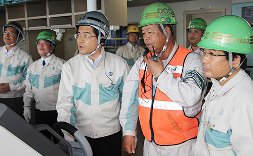 石井啓一・国土交通大臣が9月13日、香川県丸亀市昭和町の当社丸亀事業本部で、最新の造船技術などを視察されました。