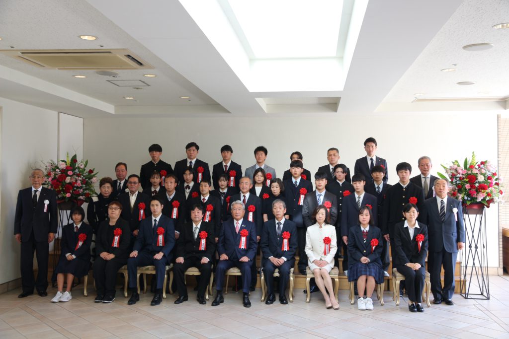 今治造船ボート部に所属する岡部政憲選手(西条営業T)、越智寛太選手(品質管理T)、御手洗航選手(施設管理T)、木村竜暉選手(品質管理T)は、第100回全日本選手権男子舵手なしクォドルプルで優勝したことにより受賞対象となり、愛媛新聞社の土井英雄代表取締役社長より表彰状と記念品を授与されました。