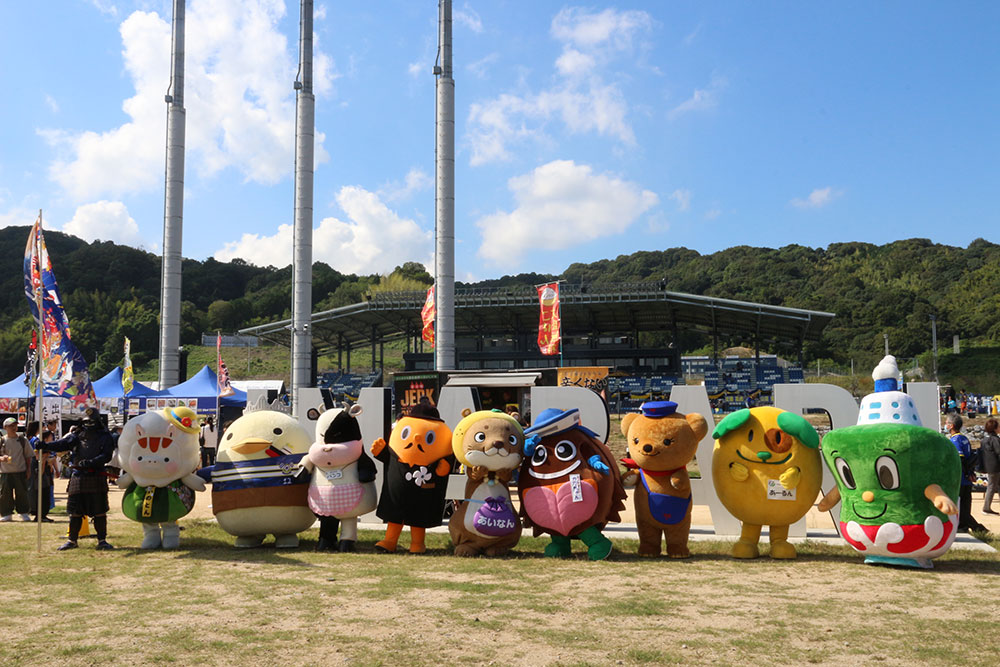 10月12日(土)、今治市の里山スタジアムで「2024 ご当地キャラ大集合!inアシックス里山スタジアム」が開催されました。このイベントは、FC今治のホーム戦の前座イベントとして行われ、愛媛県を盛り上げるため今治市のご当地キャラクターたちが集結しました。