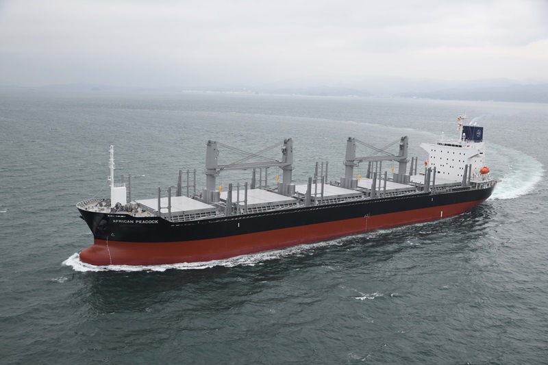 11月26日(火)、当社グループのあいえす造船株式会社にて竣工した40,000載貨重量トン型ばら積み運搬船「AFRICAN PEACOCK」を引き渡しました。