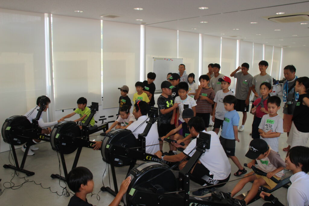教室終了後には、子どもたちから「楽しかった」「もっと漕ぎたい」といった声を多く聞くことができました。今回は酷暑の影響で室内での開催とはなりましたが、次の機会には実際にボートに乗り、水面を進む楽しさを体験してもらうことを検討しております。