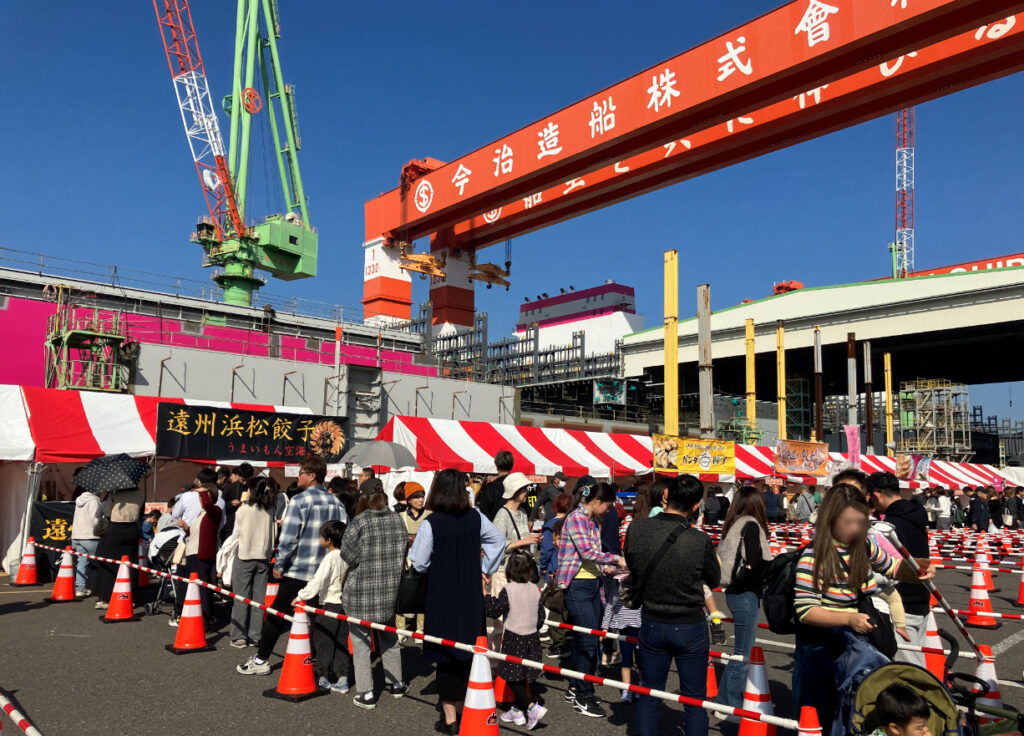 会場内の各コーナーでは、工場で使用されている巨大な重機の展示や高所作業車体験、キッズコーナー、飲食ブースなど多彩なプログラムを展開。新たな試みとして実施した「餃子&唐揚げのグルメフェス」では、各地の人気店が集結し長い行列ができるほどの盛況となりました。