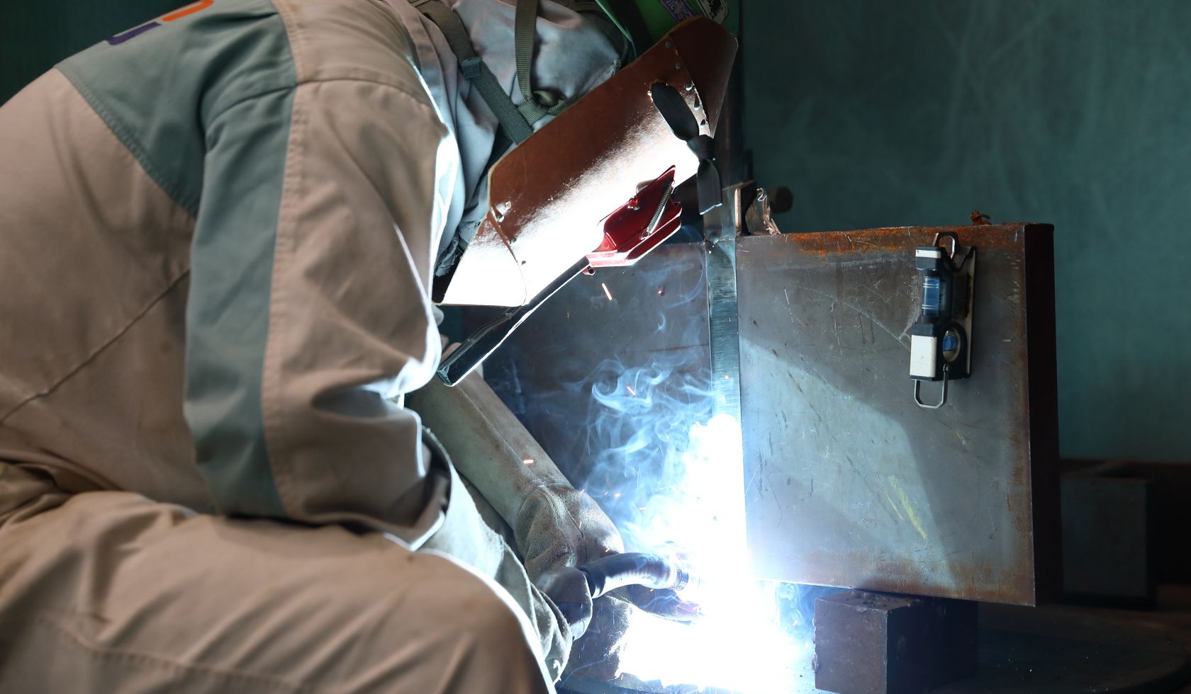 骨組みの溶接作業に携わっています。溶接には手溶接と自動溶接の2種類があり、細かい箇所や狭い場所は手で溶接を行い、厚い鉄板や長い距離の溶接には機械を用いた自動溶接を導入しています。手溶接においては、まだ任せてもらえる箇所が限られているので、技術を向上させて、より難しい箇所の溶接もできるようになるのが目標です。一方の自動溶接では、まだ機械のセットなど裏方の作業だけを担当している段階なので、これから練習して一人前のオペレーターを目指そうと考えています。