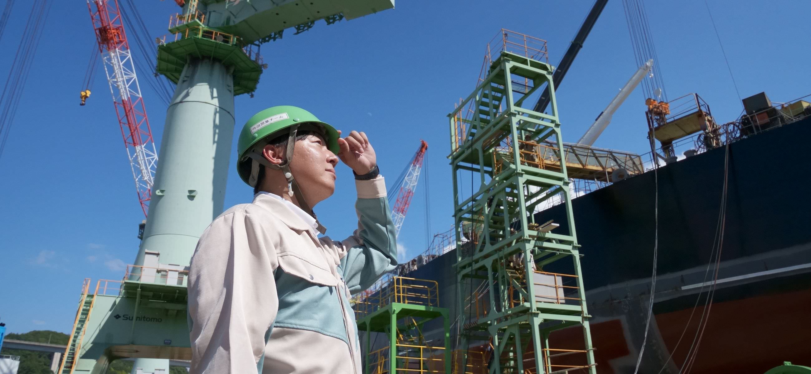 入社してからは、造船業は世界の物流を担う一翼であり、また雇用や購買で人々の生活や経済を支えていたり、船舶向けの省エネ技術の開発により環境負荷低減に貢献していたりと、さまざまな新たな魅力を発見しました。