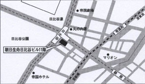 JR有楽町線日比谷口下車 徒歩5分<日比谷交差点 朝日生命日比谷ビル11階>
