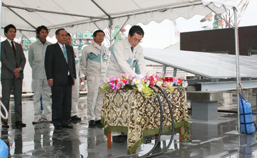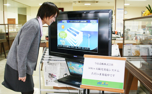 今治造船株式会社(檜垣幸人社長)は、自然エネルギーの普及と地球温暖化防止への取り組みの一環として丸亀事業本部(香川県丸亀市昭和町)に太陽光発電設備を導入し、2月15日から稼動を始めました。設備の発電容量は50kWで、環境省の「平成21年度ソーラー環境価値買取事業」の採択を受け、伊藤忠グループの株式会社日本エコシステム(東京都新宿区)が施工しました。