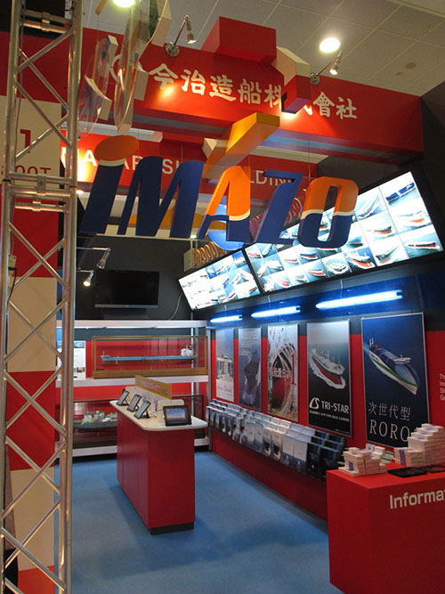 テクスポート今治1階の造船パビリオンに開設した今治造船の展示ブースでは、過去に当社で建造した2,000隻の写真や省エネと海賊対策を実現する上部構造『エアロシタデル』・新船型IS TRI-STAR、エコシップの開発等をタブレット端末を使って紹介するコーナーも新設しました。環境にやさしい船造りと新技術の開発に取り組む姿勢や、日本一の建造量を誇る今治造船の魅力をアピールしました。
