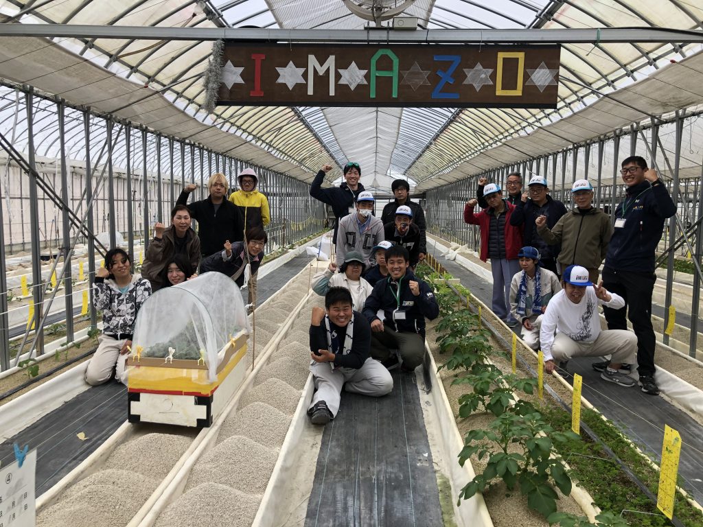 いまぞう農園は障害者雇用促進を目的に、同ボート大会会場付近となる豊明市に開設されており、社員の福利厚生、ボート部の遠征時における栄養管理の為、定期的に新鮮な野菜を提供しています。ボート部員は日頃の御礼を兼ねて、いまぞう農園の従業員と交流。6月の全日本社会人選手権時の遠征に向けて、じゃがいもや、たまねぎなどの栽培が進んで入ることの説明を受けるなど、同じ今治造船グループの仲間として結束と、引き続きのサポートを約束しました。