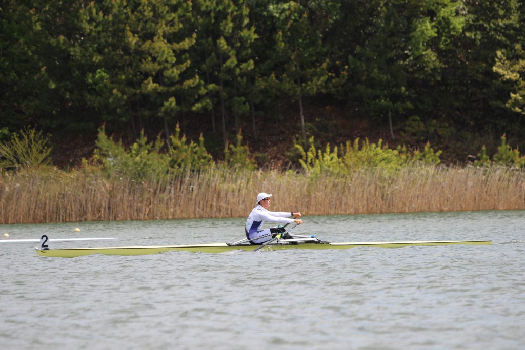 男子ダブルスカルで出場した越智選手・岡部選手ペアは、予選から見事なレース展開で準決勝、決勝へと進出。また、男子シングルスカルで出場した御手洗選手も、予選タイムで全体2位と好発進。準決勝も強風の中、力強い漕ぎを見せ決勝へと進出しました。