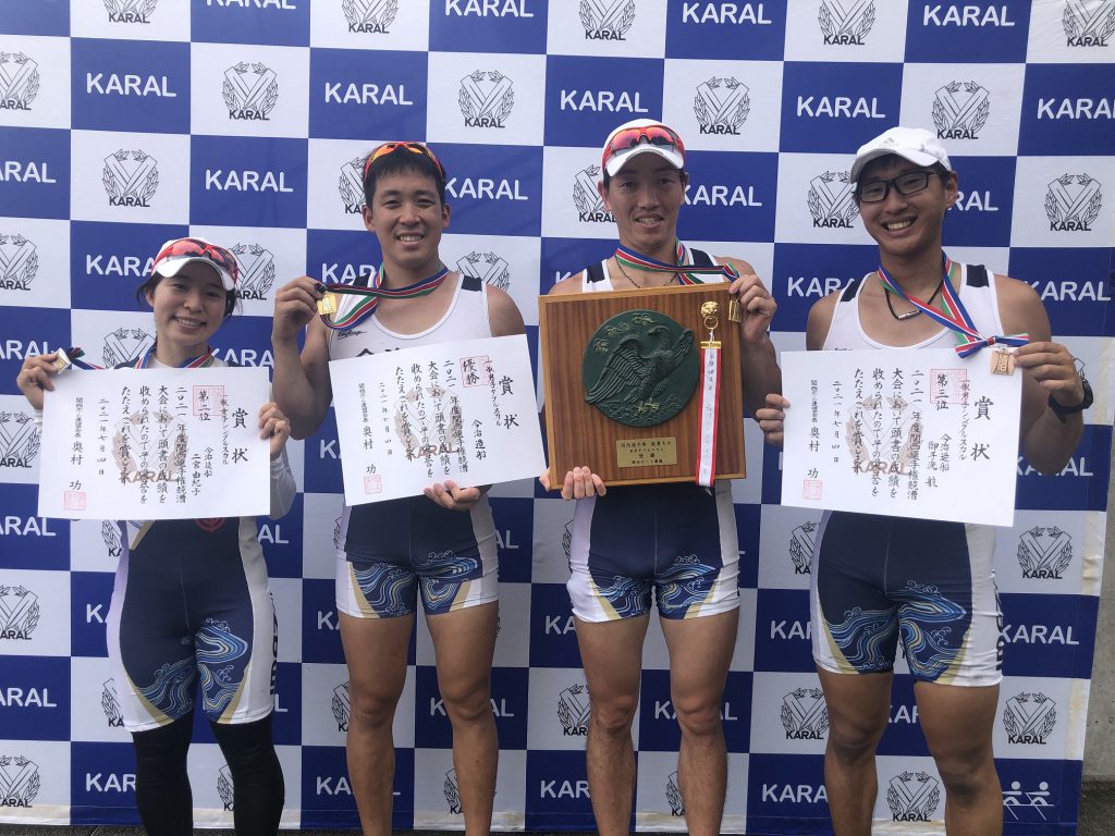 7月3日~4日、大阪府高石市大阪府立漕艇センターにて「2021年度関西選手権競漕大会」が開催され、当社ボート部から3クルーが出場し、男子ダブルスカルが優勝、女子シングルスカルが準優勝、男子シングルスカルが3位となり、全員が表彰台に上がる成績を収めました。