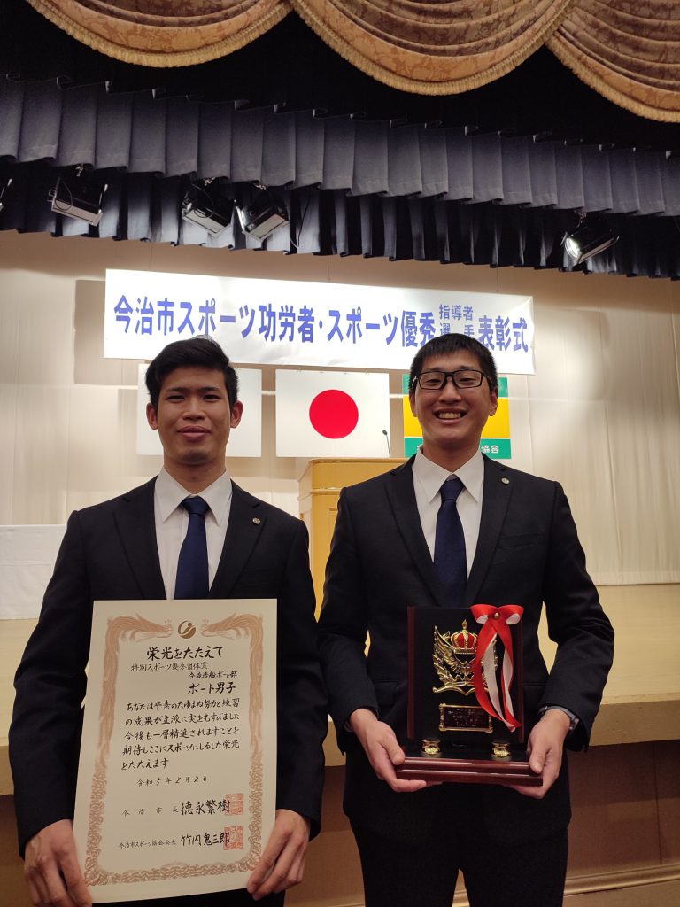 昨年の全国大会などの実績を対象にした「令和4年度今治市スポーツ功労賞等表彰式」が、2月2日(木)に今治国際ホテルで行われ、当社ボート部に所属する