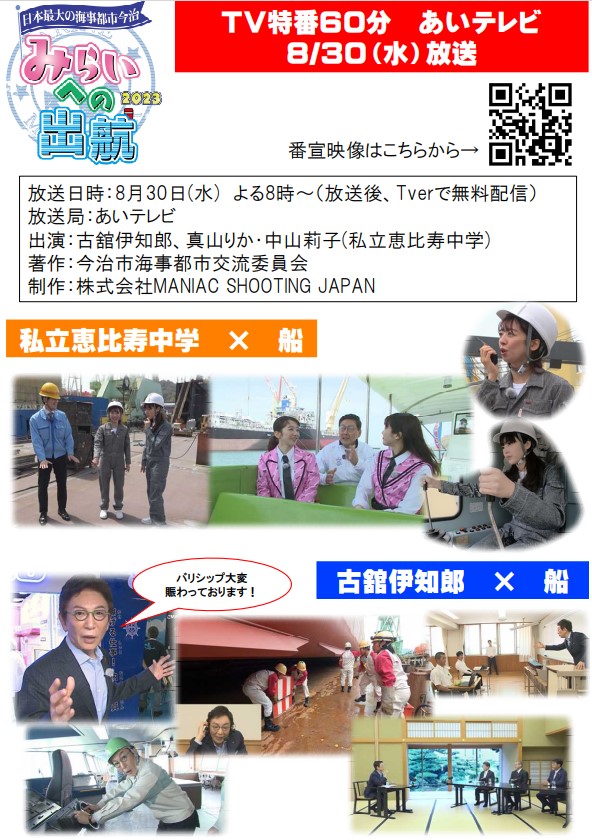 今年5月に開催されました「バリシップ2023」の振り返りや海事都市今治のPRを目的とした夏休み特別番組が下記の通り放送されます。