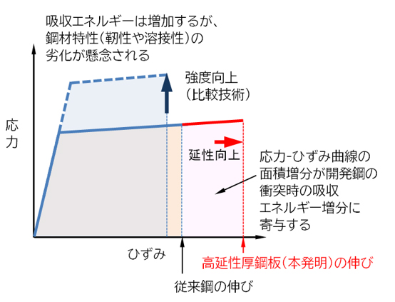 本技術を採用した船舶は、関係諸機関のご理解も得て、国土交通省告示第356号の「先進船舶」として税制優遇され、また、国際的な入港料減免制度の評価項目に高延性厚鋼板の採用の有無が追加されています。このように社会的、経済的に有益な高延性厚鋼板は、当社建造の超大型原油タンカー、ばら積み運搬船、自動車運搬船等に実装し、日本の海事産業の競争力向上に寄与しています。