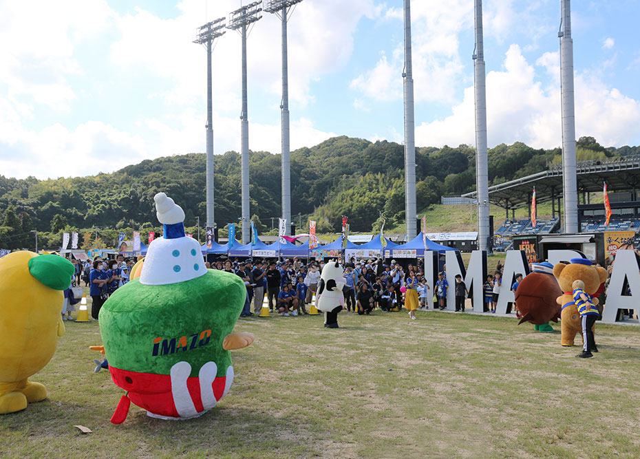 10月12日(土)、今治市の里山スタジアムで「2024 ご当地キャラ大集合!inアシックス里山スタジアム」が開催されました。このイベントは、FC今治のホーム戦の前座イベントとして行われ、愛媛県を盛り上げるため今治市のご当地キャラクターたちが集結しました。