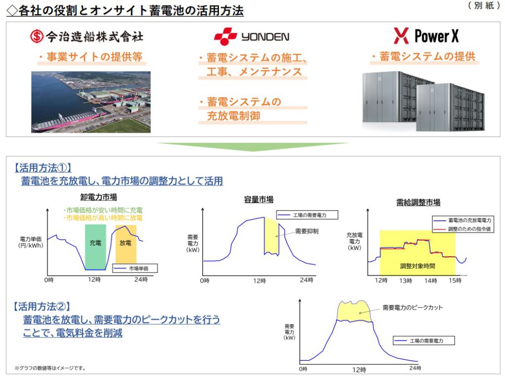 四国電力株式会社(以下、四国電力)および今治造船株式会社(以下、今治造船)は、両社 共通の出資先である株式会社パワーエックス(以下、パワーエックス)が製造する定置用蓄電システムを用いた「オンサイト蓄電池事業」を実施するため、今治造船西条工場東ひうち事業部の敷地内への設置工事を進めてまいりましたが(2025年9月1日お知らせ済み)、本日、運用を開始いたしましたのでお知らせいたします。