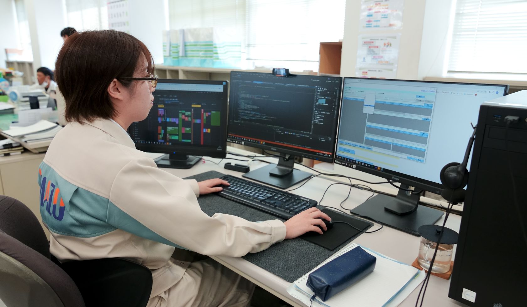 今治本社で全社向け艤装系の生産設計システムの開発と運用・保守を担当しています。艤装工程ではどこにどのような配管を通すか等を3DCADで設計しますが、そこで用いるマクロ開発をはじめ、設計した配管の材質・サイズ・数量といった情報を現場に連携するシステムの設計・開発などを手がけています。設計事務所の生産設計部門と同じフロア内で業務をしており、すぐ横にユーザーがいるので、使い勝手や要望などの意見を聞きやすく、よりシステム設計・開発が進めやすい環境といえます。