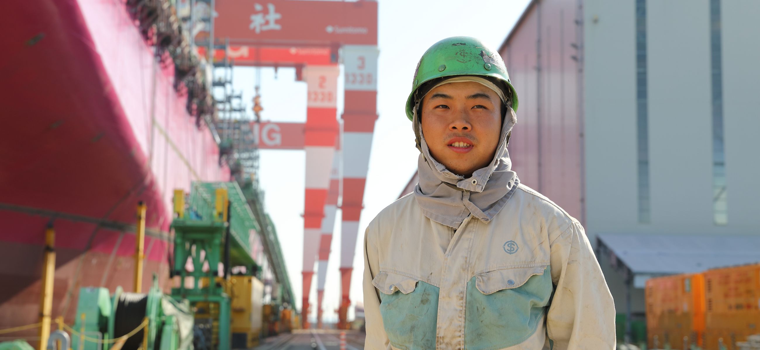 溶接がきれいに仕上がったときは、とてもうれしいです。「集中して取り組んで良かった」と達成感を感じます。ただ、溶接は職人の世界で、経験を積んだ先輩の技術は「すごい!」の一言。これを超えていかないといけないと、気持ちを入れて仕事に取り組んでいます。また、船がドックから出て岸壁についた姿を目にしたときも、やりがいを感じる瞬間。ごく一部分ではあるものの「自分の溶接で船が浮いているんだ!」と思って喜びを感じます。