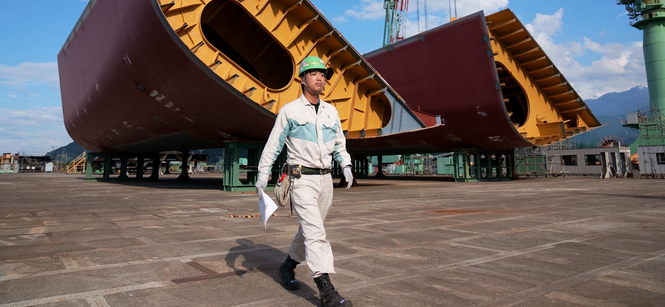 高専時代にいろいろなものづくりを手がけましたが、どれも小さいものばかりで自分には向いていないと感じていました。「もっとスケールの大きなものづくりがしたい!」と考えたことから興味を持ったのが造船業。調べてみると、愛媛県内に世界レベルの造船会社である今治造船があると知り、ここなら大きなものづくりを行うプロジェクトに参画することで、自身の成長ややりがいを実感できると考え、志望しました。